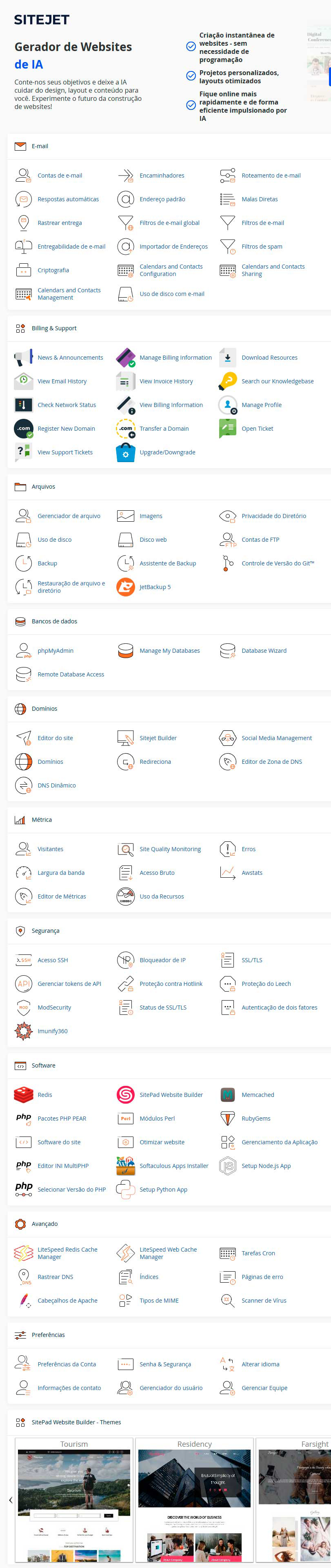 Este á o painel cPanel do plano de vitrine